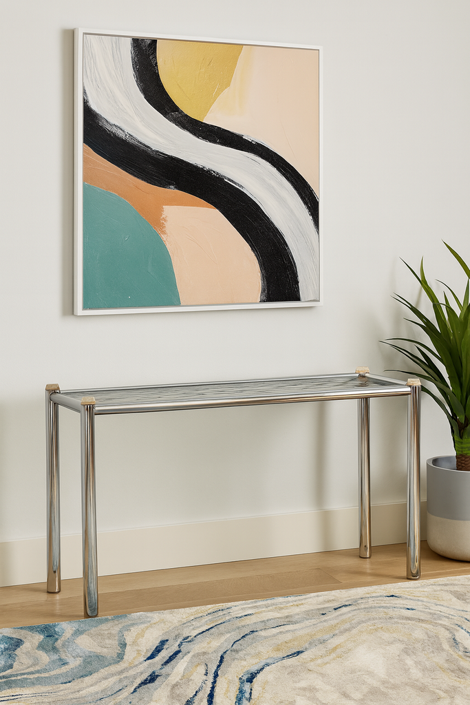 Mid Century MODERN Chrome + Smoked Glass CONSOLE TABLE, c. 1960's