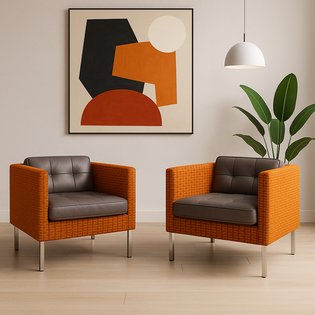 Pair - Mid Century Modern styled LOUNGE CHAIRS with Custom Upholstery, Made in Canada by Nien Kamper