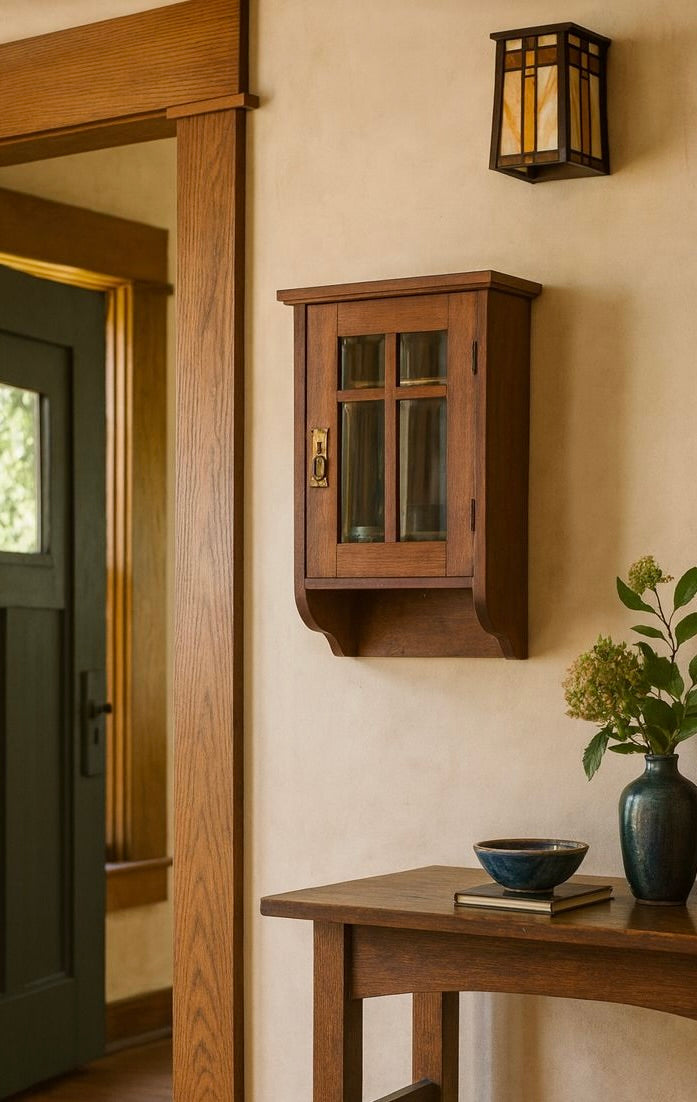 Authentic 19th century German wall curio cabinet, crafted by hand and preserved with its original wavy glass panes and brass keyhole hardware featuring classic Biedermeier influences and the warm, organic character of solid wood shaped by two centuries of use. The cabinet opens to an interior shelf that offers space for storing or displaying favorite small objects, ideal for kitchens, entryways, bathrooms, and intimate corners of the home. Its size makes it particularly useful in an entryway, and the flat lower edge provides the perfect spot to add a few discreet hooks for hanging keys so they can be reached easily as you enter or leave the house. This is an authentic early European piece that brings the quiet beauty of old world craftsmanship into any space.