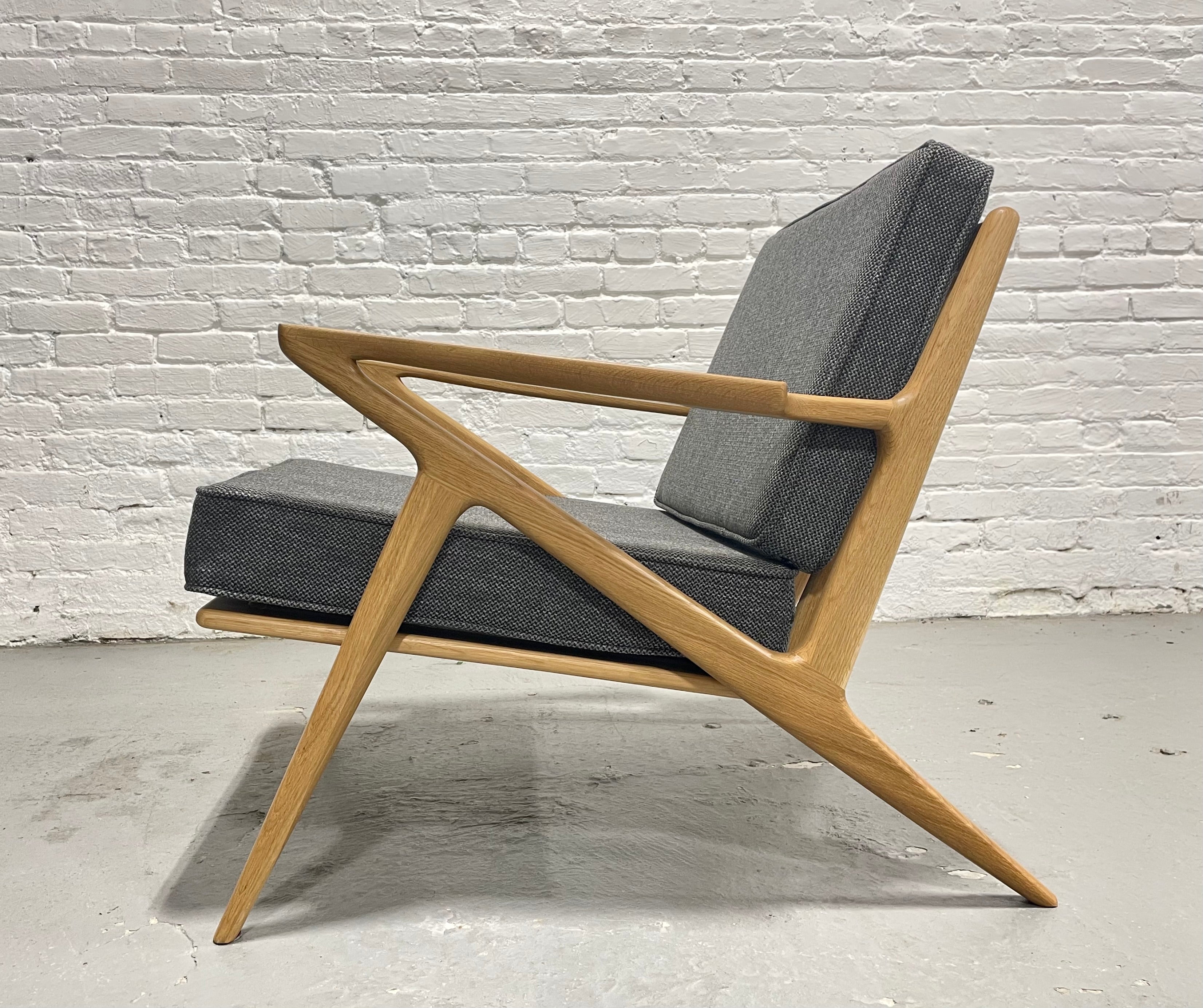 Bring timeless design and everyday comfort into your home with this handcrafted Mid Century Modern lounge chair. Built in solid oak, it features sculptural armrests, angular back slats, and striking natural wood grain that make it a statement piece from every angle.