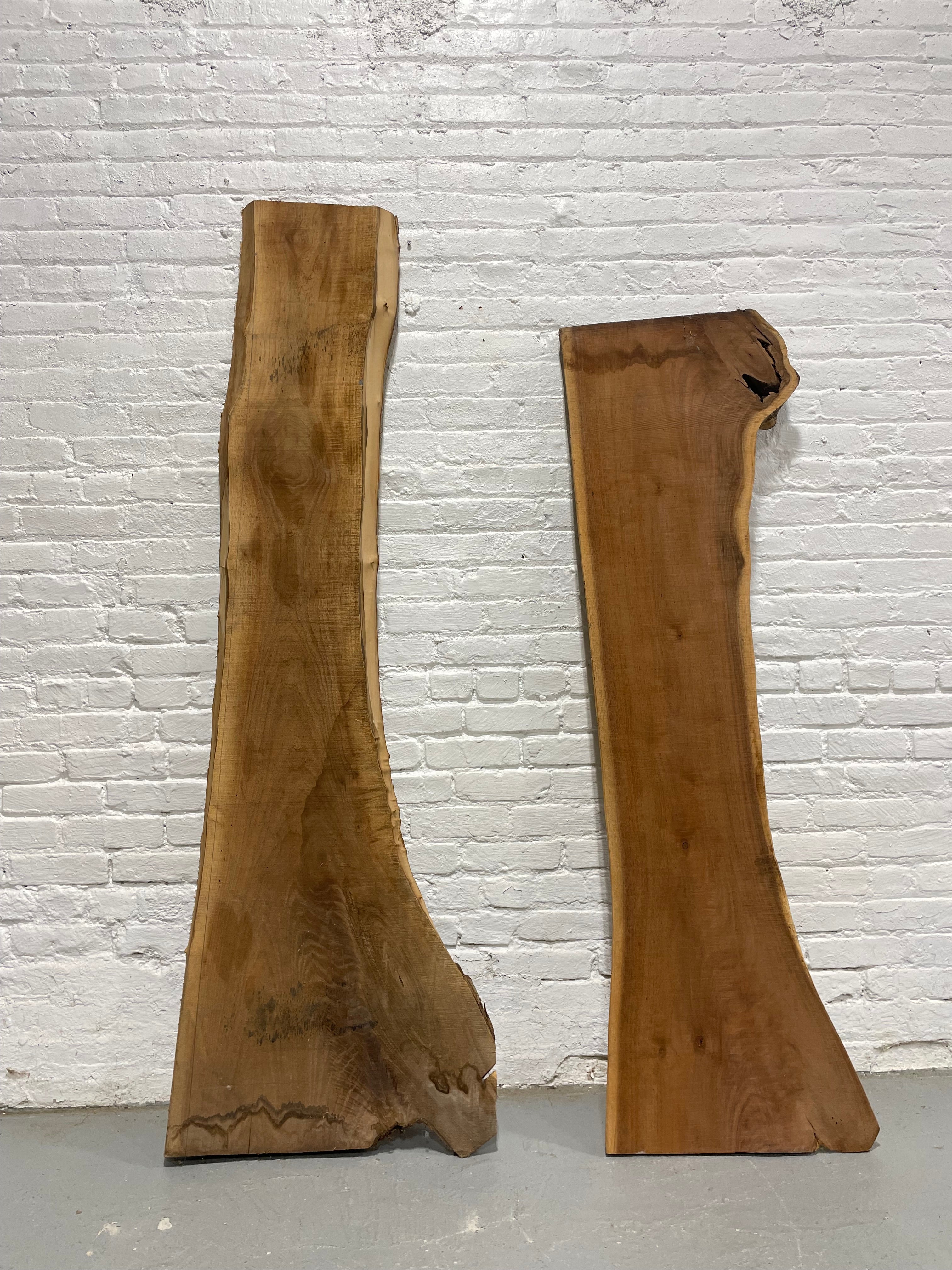 Live Edge Wood Slabs, raw unfinished condition. Each piece showcases the organic shape, grain and texture of the original tree, making them perfect for custom furniture builds, shelving or wall art projects. These are perfect for an easy custom furniture project - finish the tabletop with poly or your favorite finish and attach hairpin legs to make an amazing coffee table or desk, attach to a wall for shelving or a great desk. Each slab is $550, please indicate which slab you are purchasing in notes at checkout (A or B).