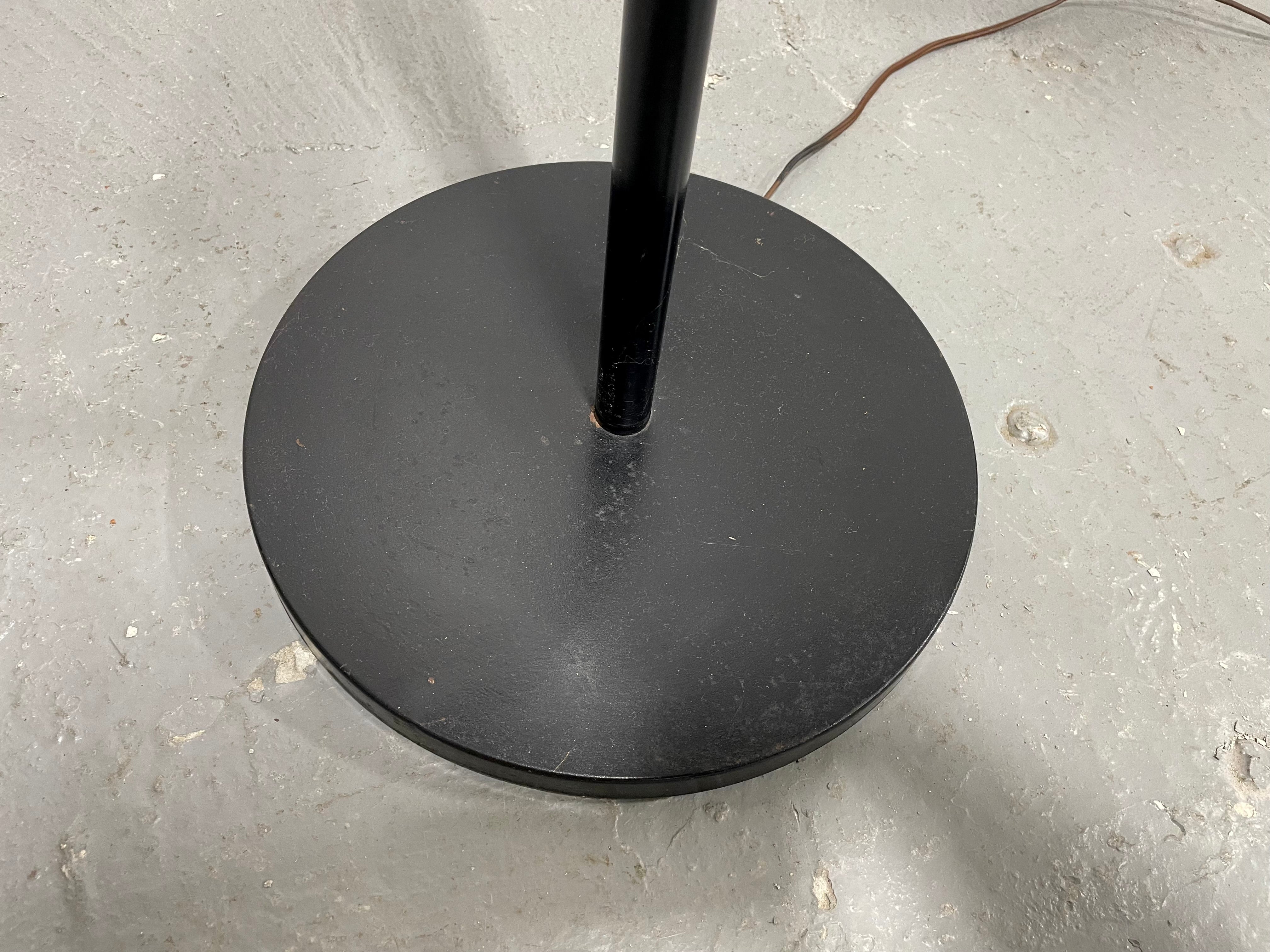 Mid Century Modern chrome floor lamp featuring three adjustable “eyeball” shades and sleek black accents. Each chrome globe pivots and tilts to direct light exactly where you need it — ideal for reading corners, living rooms, or adding statement lighting to a modern interior. The three articulated arms extend from a central hub and can be positioned independently for customized illumination and dramatic visual balance. The heavy circular black base ensures stability while adding a bold contrast to the polished chrome finish. Beautifully preserved with light vintage wear consistent with age and use, this lamp has been fully tested and works perfectly.