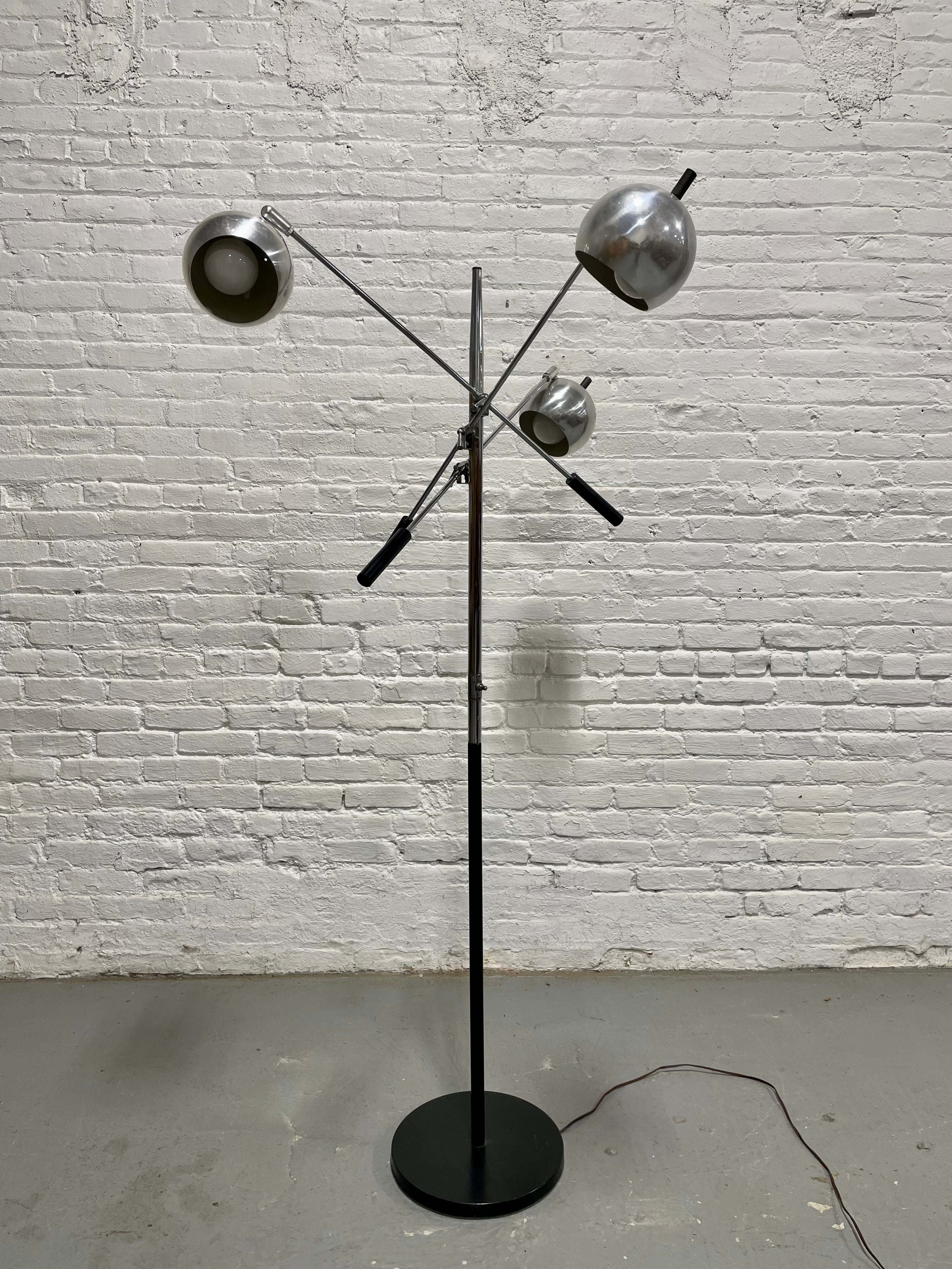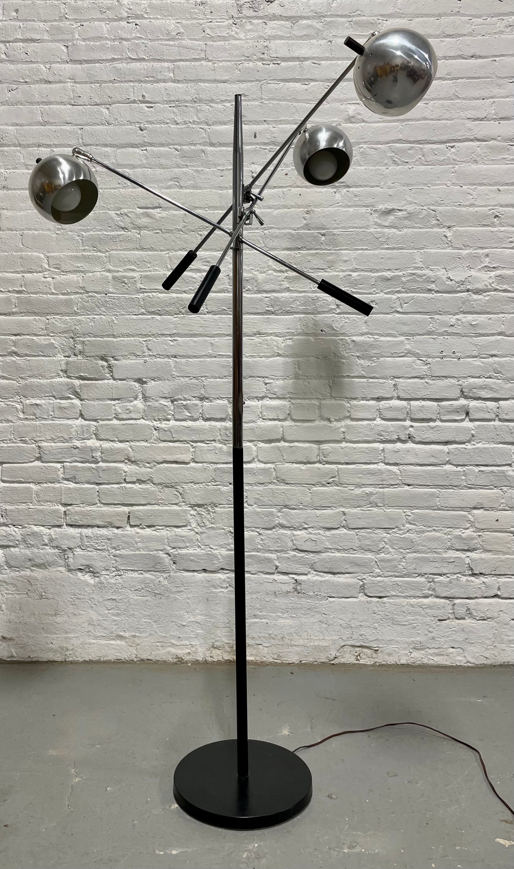 Mid Century MODERN Robert Sonneman Chrome FLOOR LAMP - Adjustable 3 Arm “Eyeball” Design, c. 1960’s