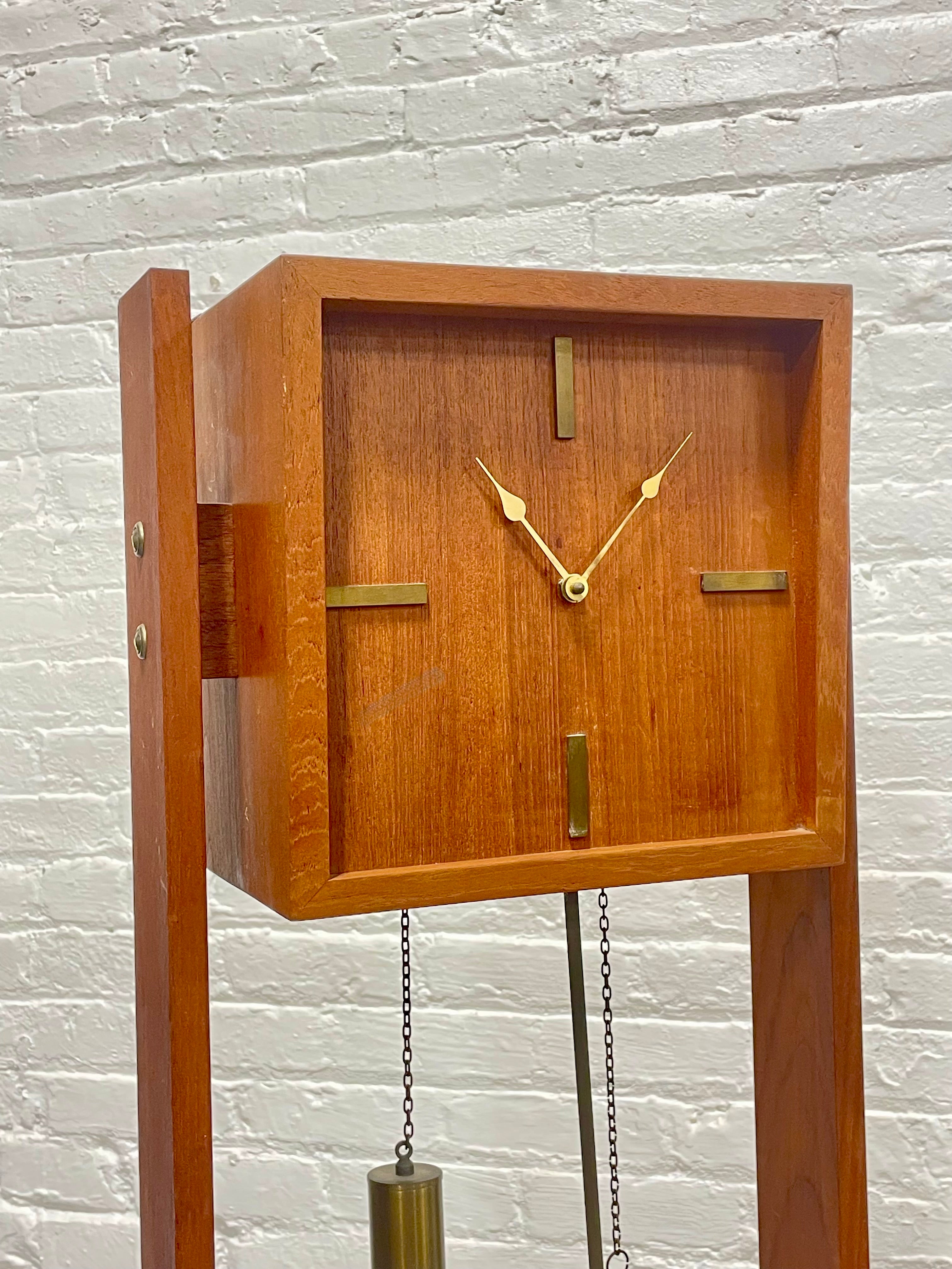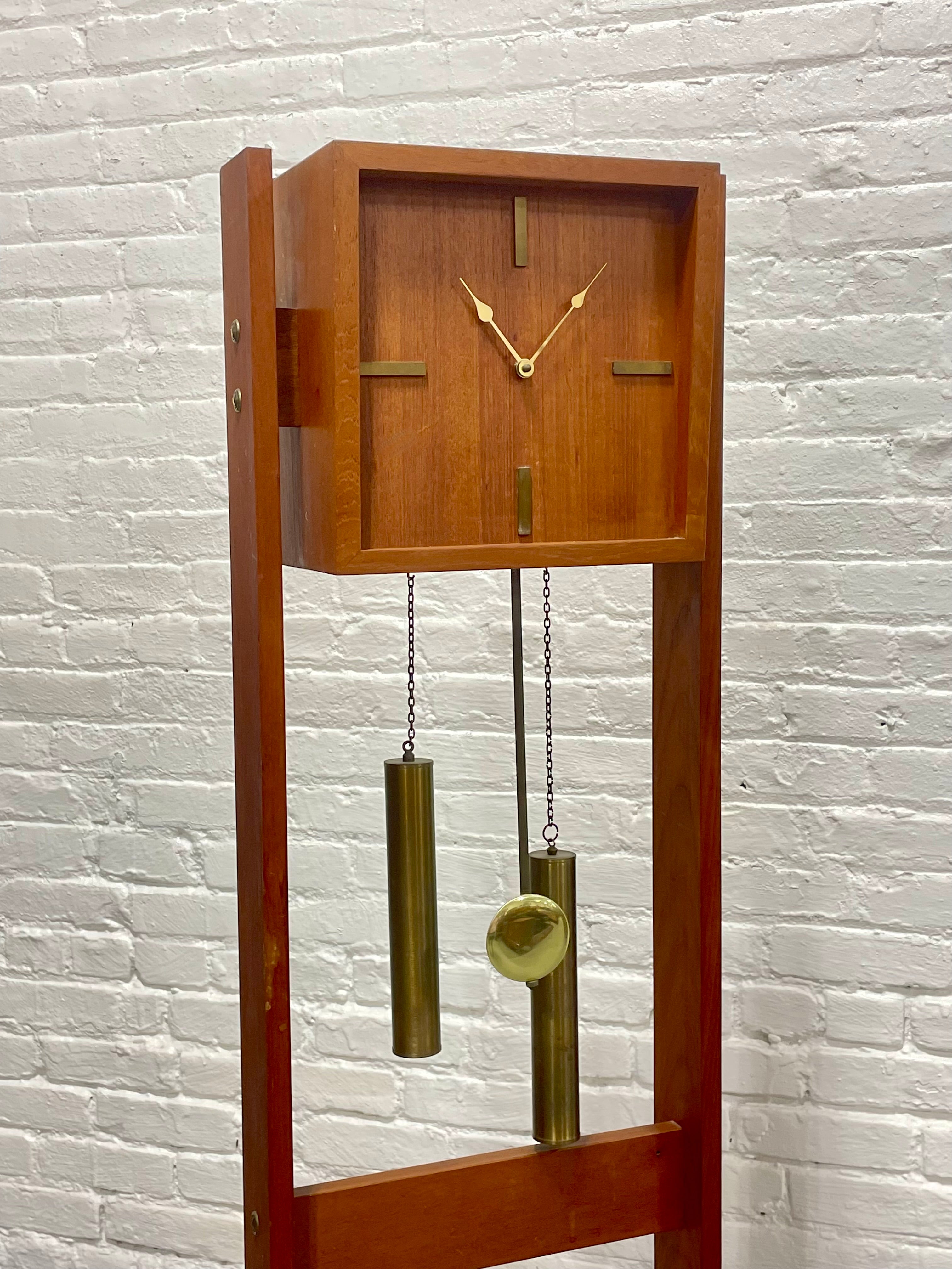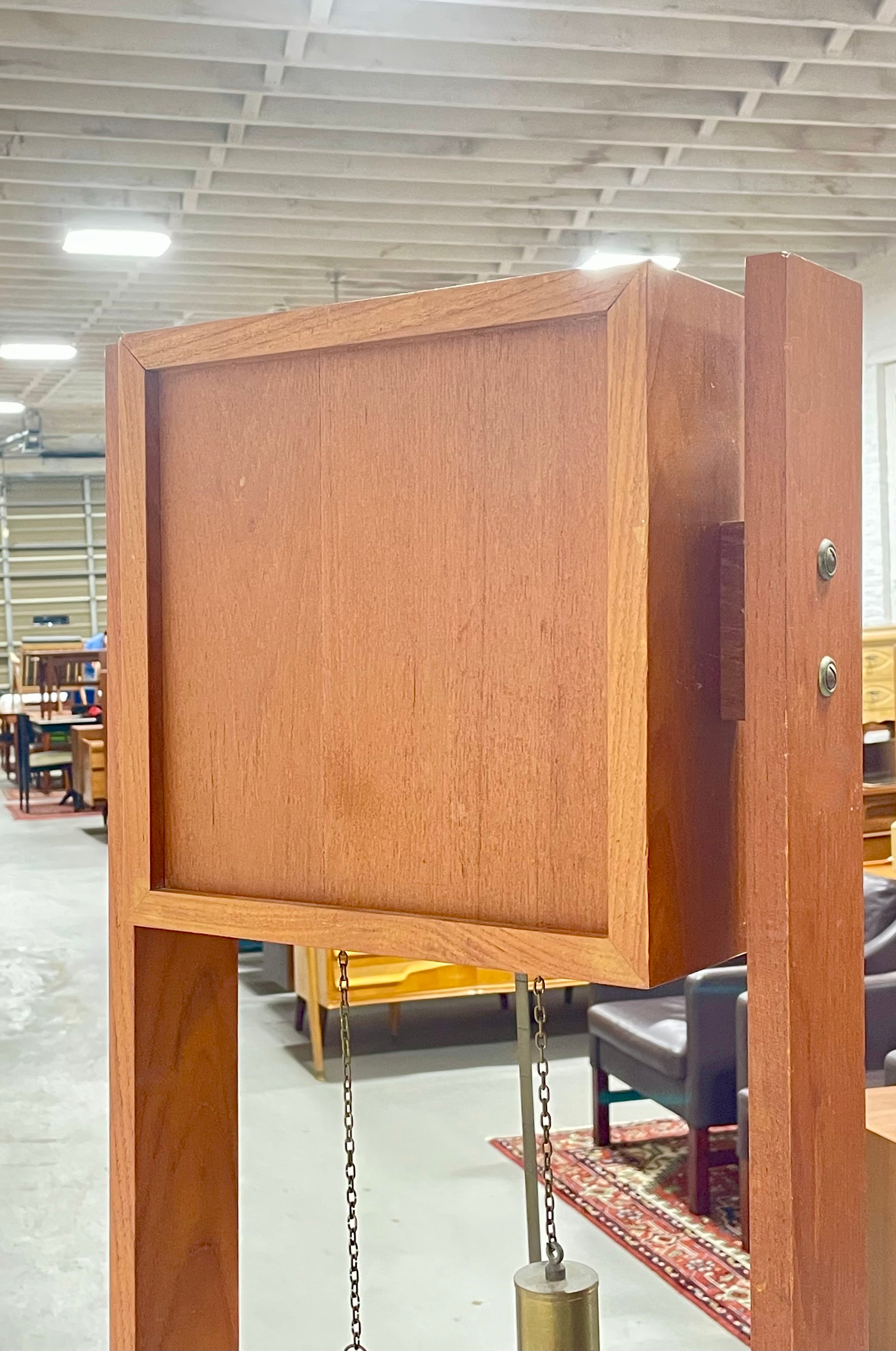 Mid Century Modern TEAK + Brass Weight Drive Chiming Floor Clock, c. 1960’s, Denmark