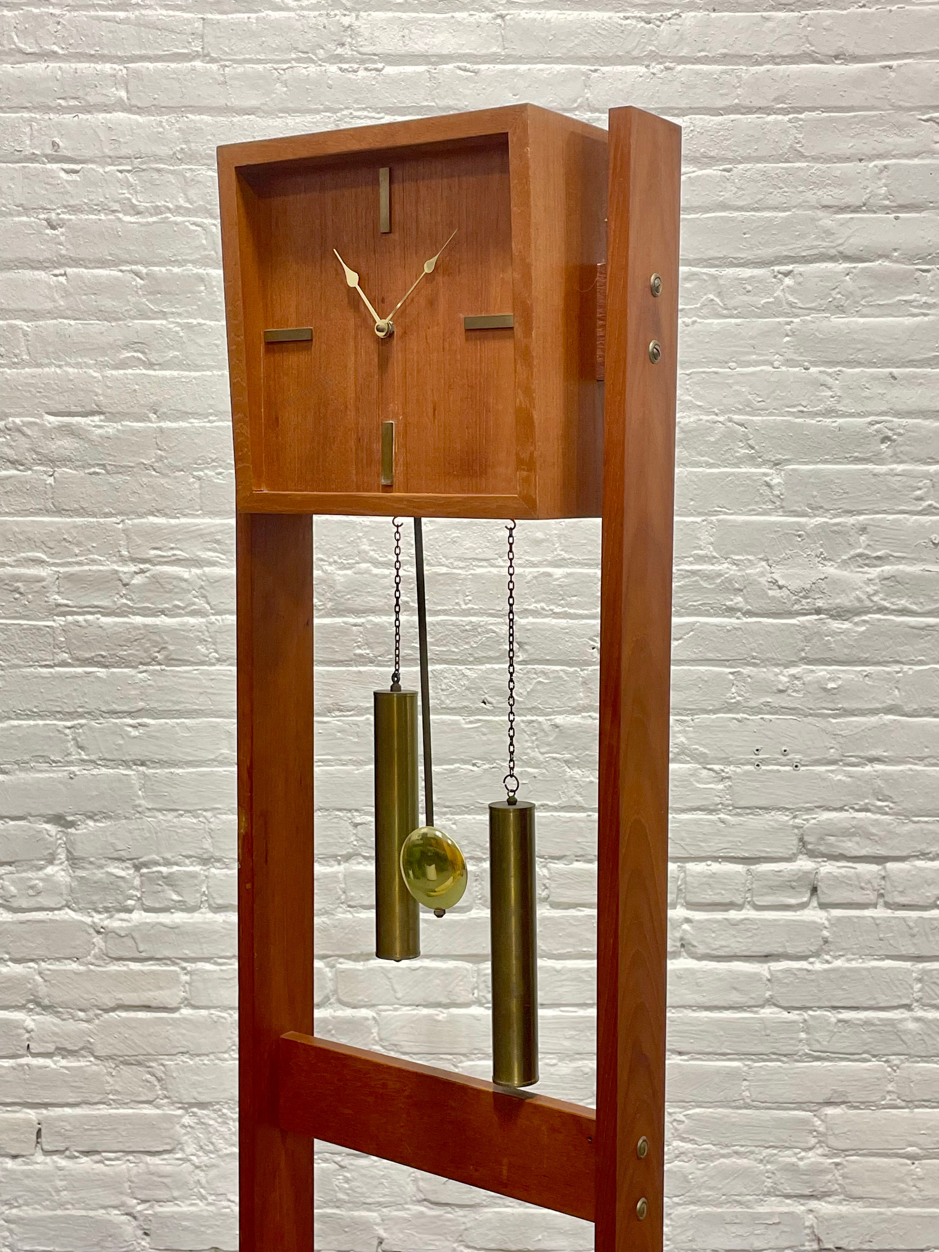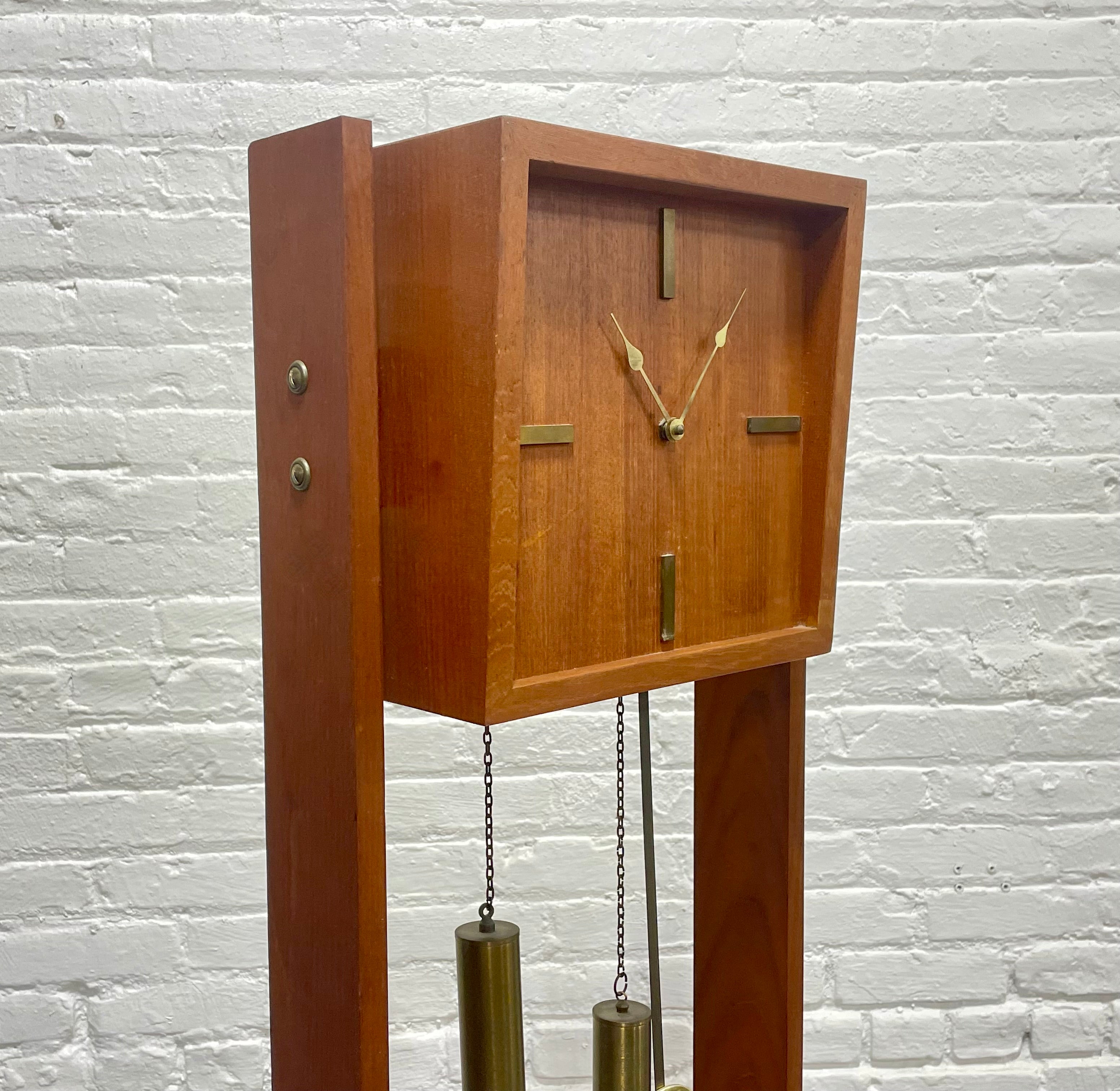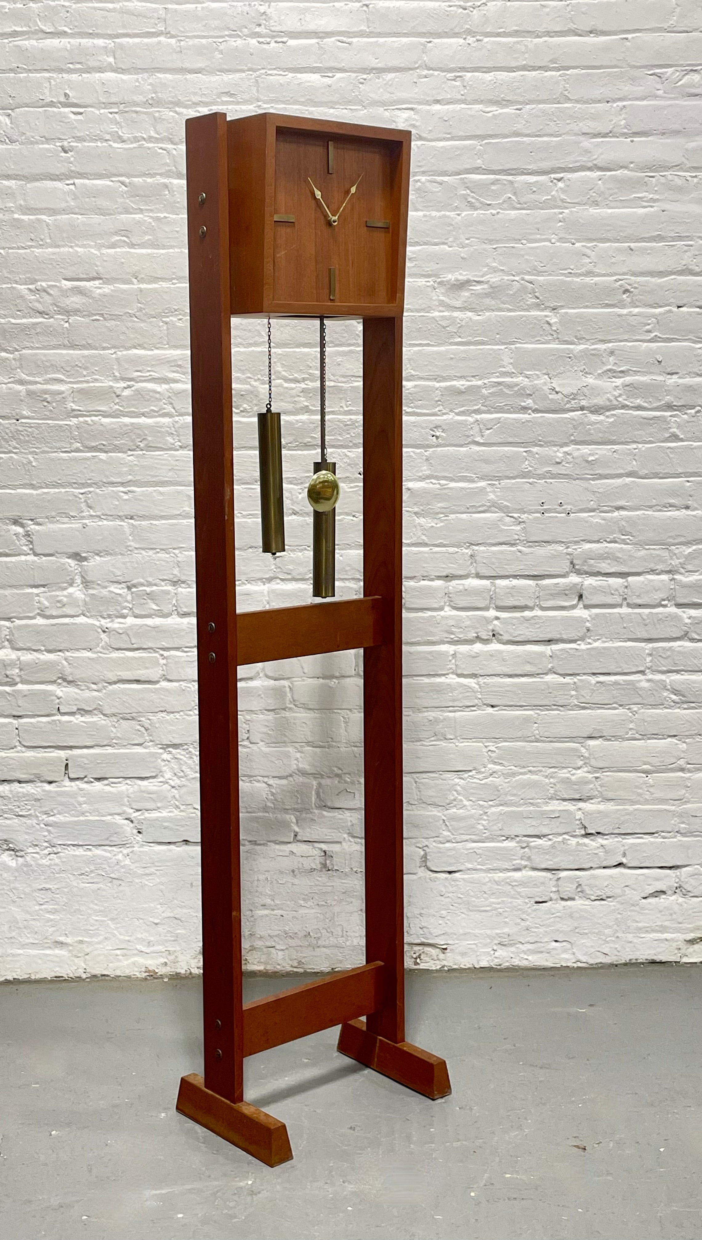 Mid Century Modern TEAK + Brass Weight Drive Chiming Floor Clock, c. 1960’s, Denmark