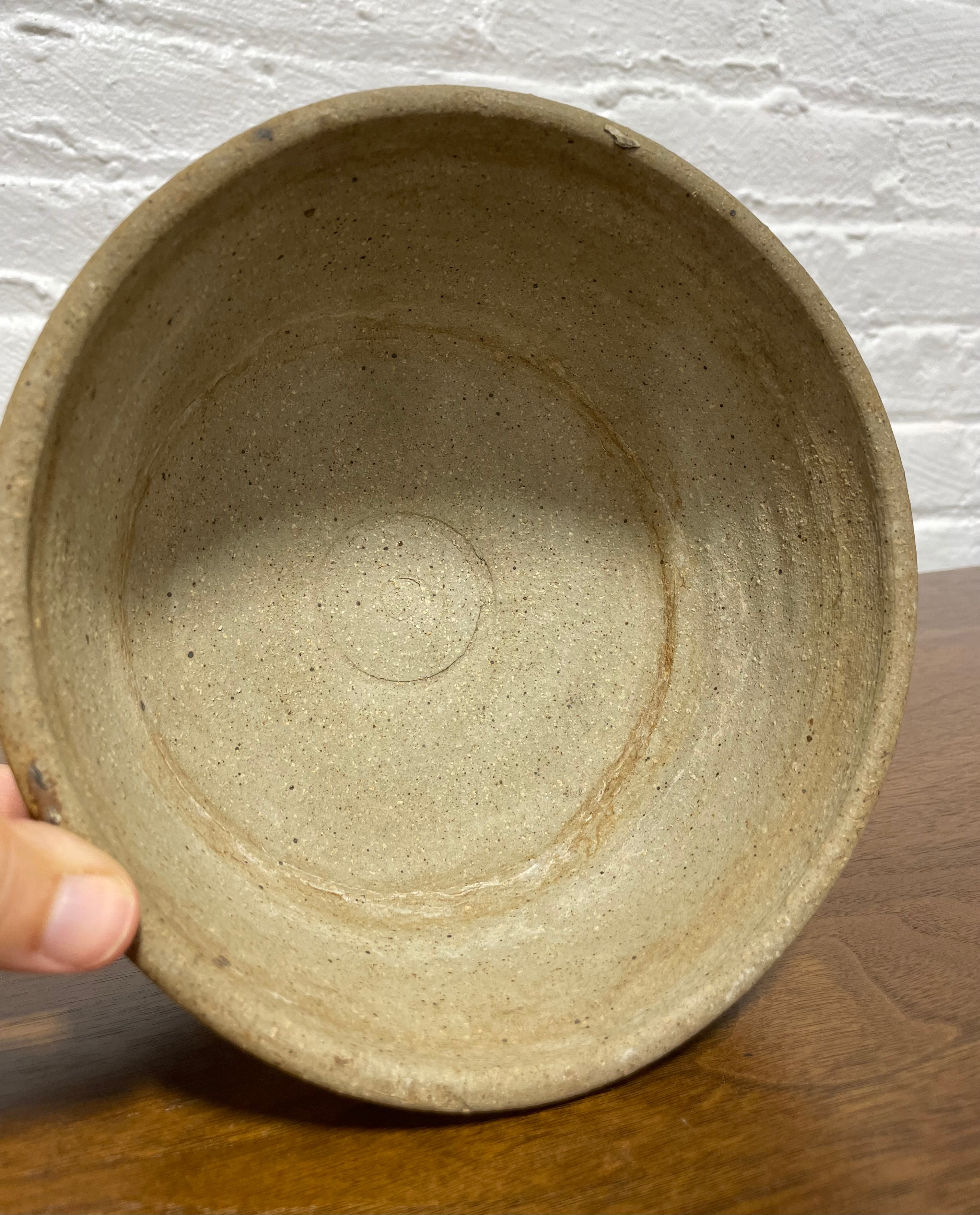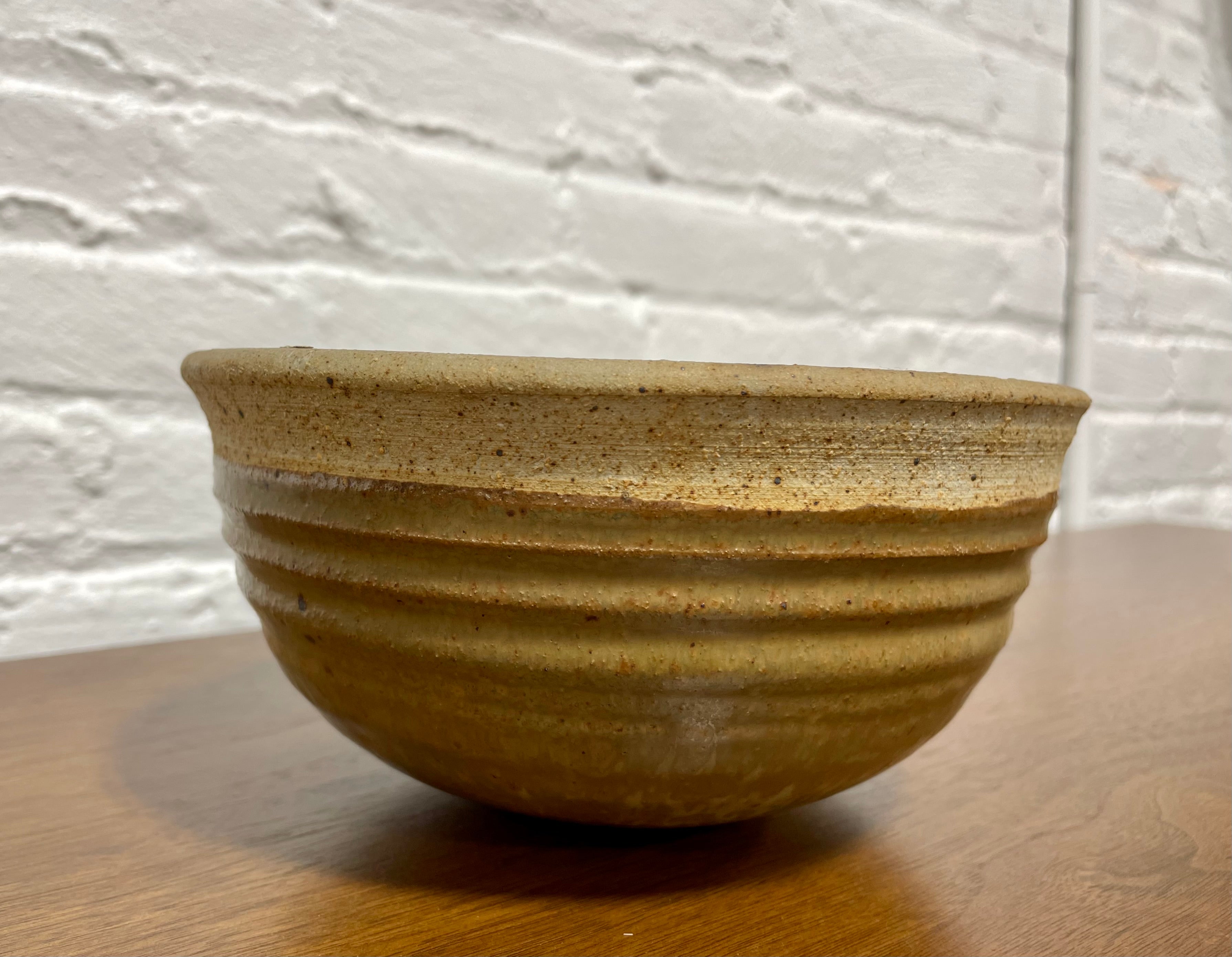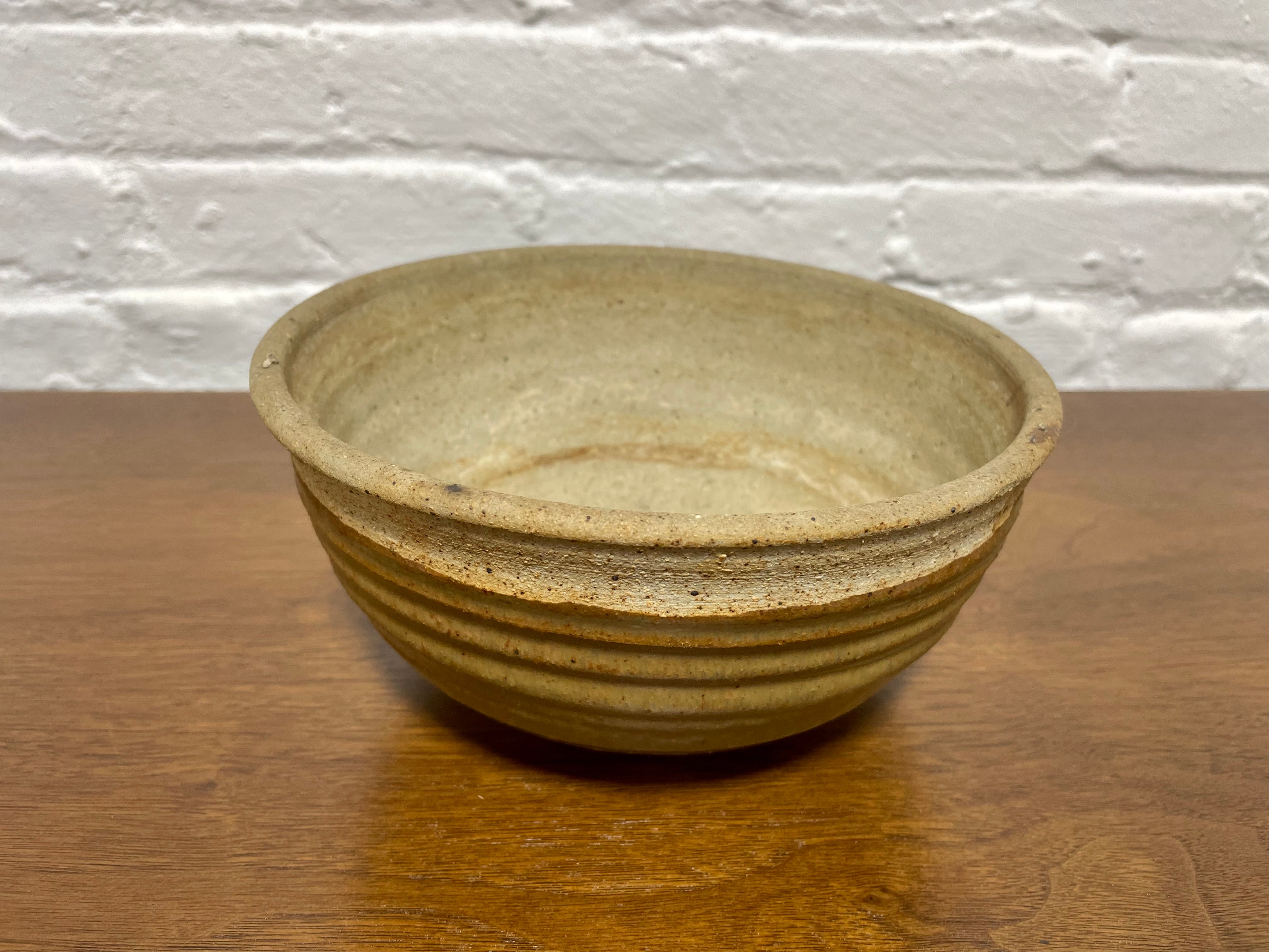 Beautifully hand thrown vintage stoneware bowl. Crafted by an independent studio potter, this piece features a natural oatmeal-toned clay body, subtle speckling, and classic wheel-thrown ridges along the exterior. Lovely contrast of glazed exterior with an unglazed interior and softly rounded rim give it an earthy, understated look that pairs perfectly with Scandinavian and modern interiors. A timeless piece of artisan pottery—perfect as a catch-all bowl for keys and change or decor. Ships free via UPS!