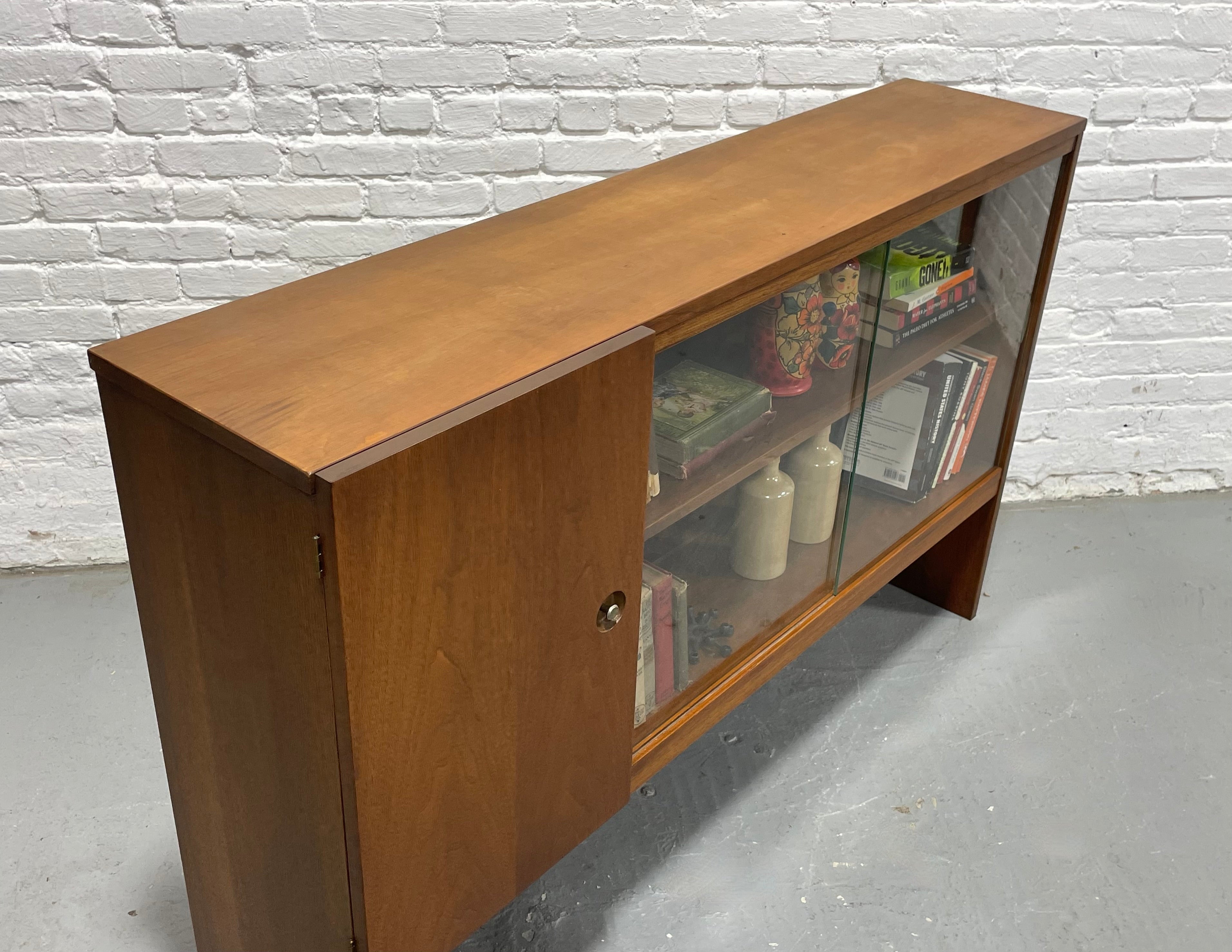 Mid Century Modern Teak Danish Bookcase / hutch, c. 1960's. Plenty of room for books or displaying your collection. This narrow piece makes it a great choice for a hallway or long wall space and the glass doors keep the dust out. Nice vintage condition with light wear from age and use.