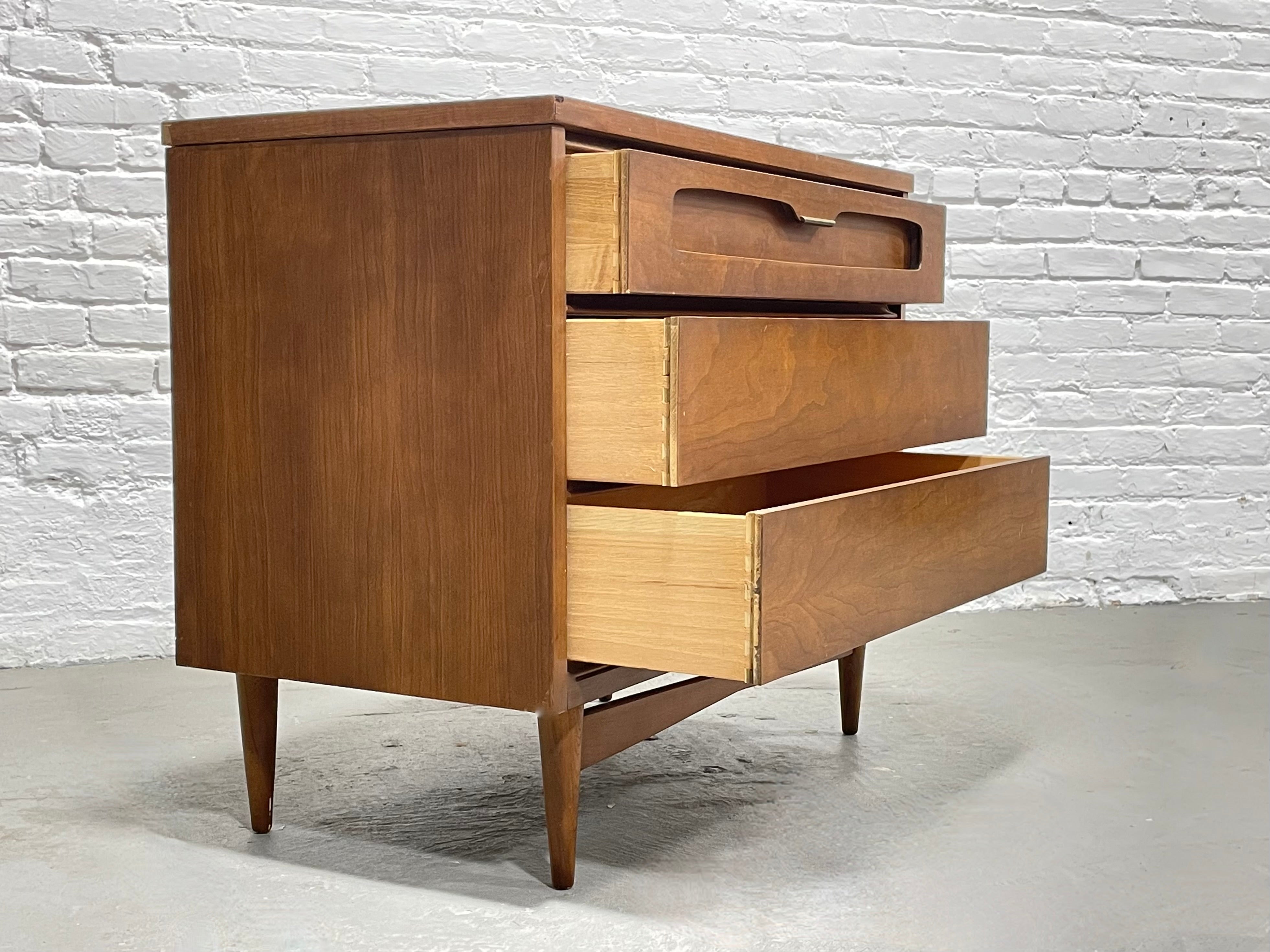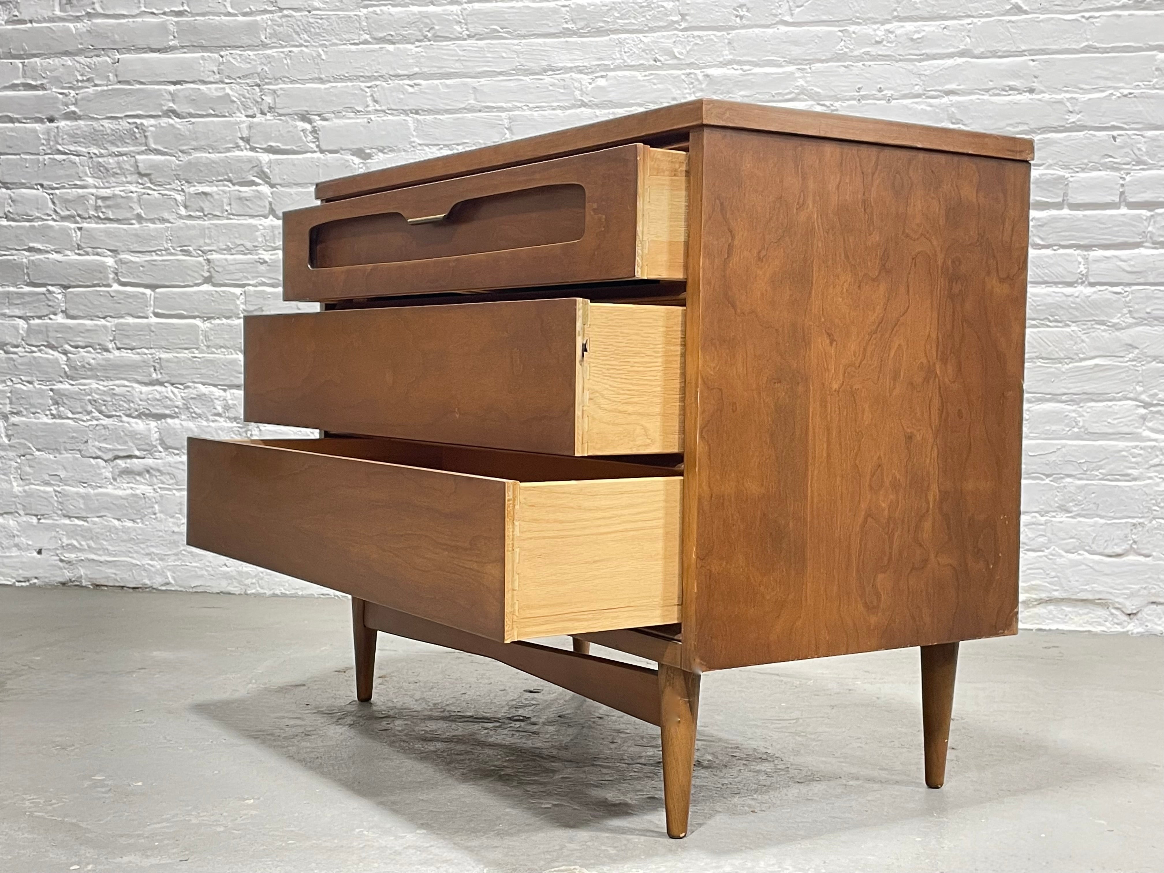 Mid Century MODERN WALNUT Petite DRESSER by Bassett Furniture Co., c. 1960s